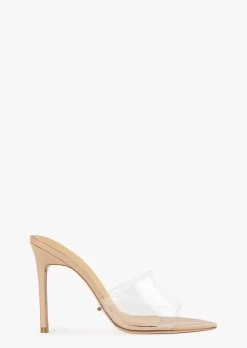Point yourself in the right direction with our Marley vynalite mules. Pointed to perfection, this heeled mule showcases a transparent upper with a quality leather lining and comfortably cushioned sole. Finished with a leg-lengthening 10.5cm stiletto heel for the ultimate win.