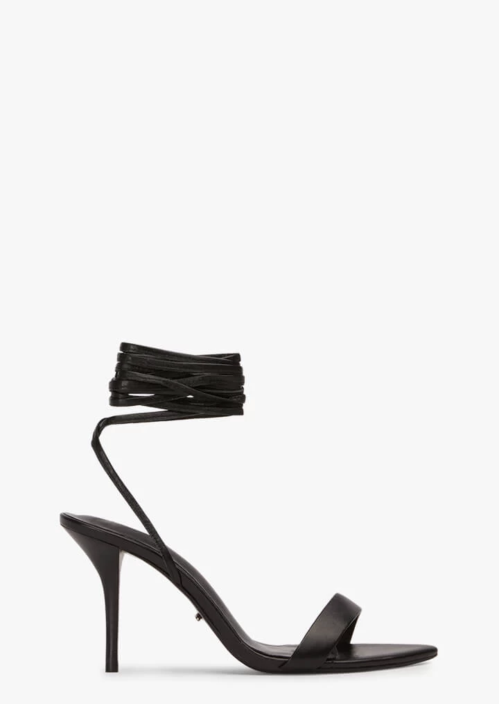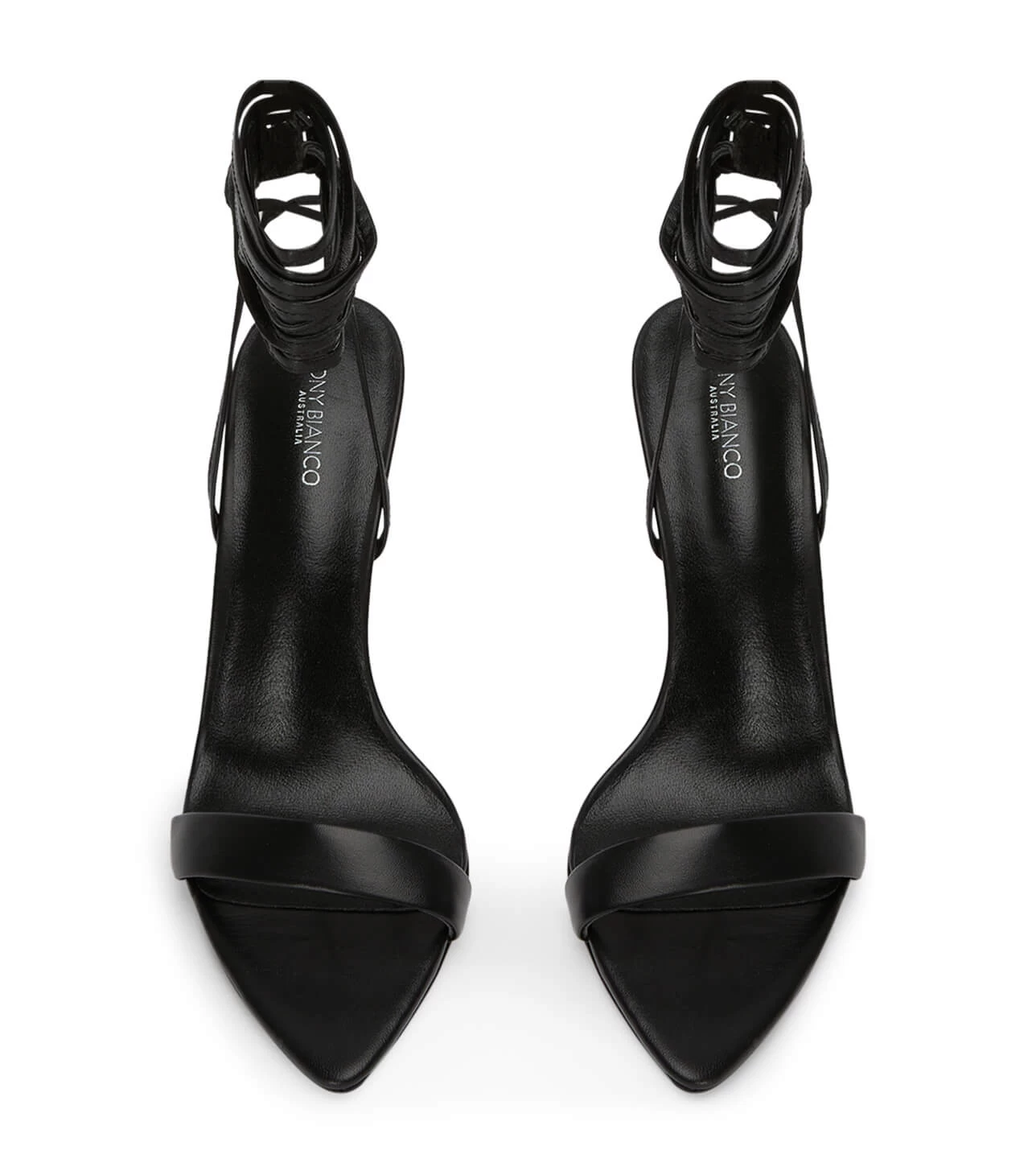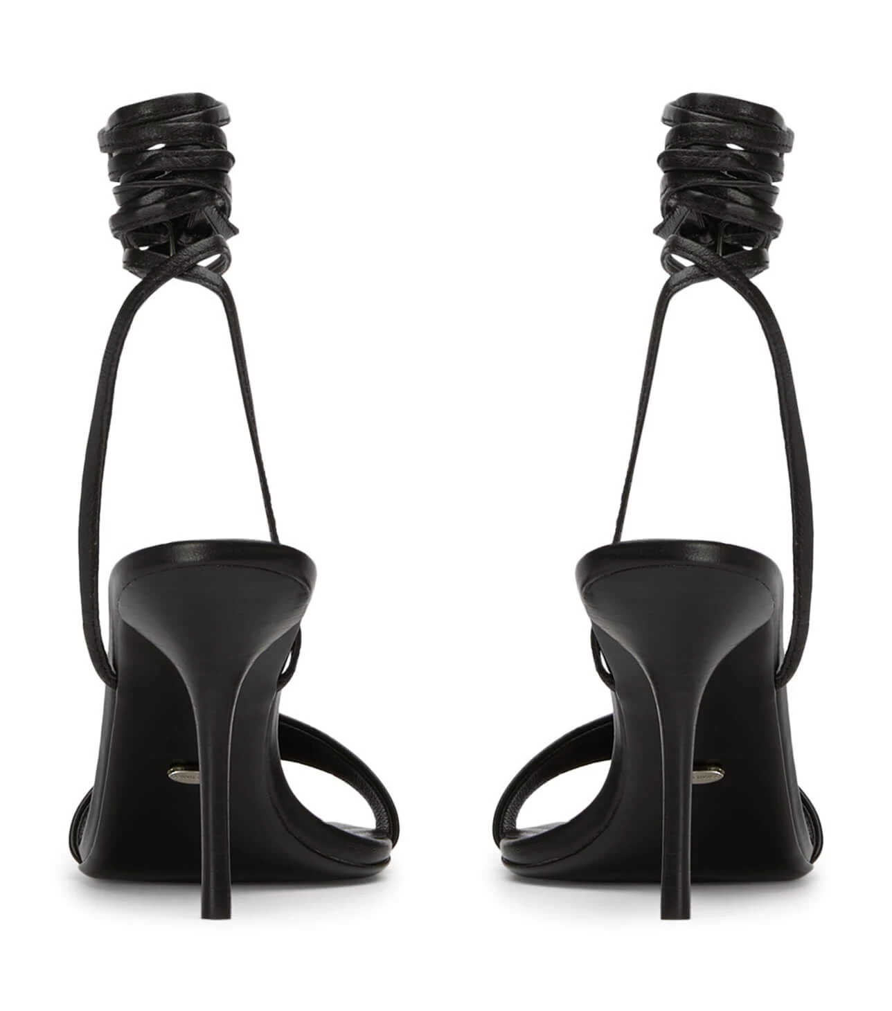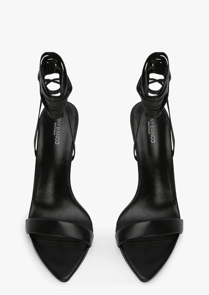 Take a moment for Marvin, our black stiletto heel. Sleek and sensuous, Marvin elongates the leg whilst its legs ties allow for versatility.