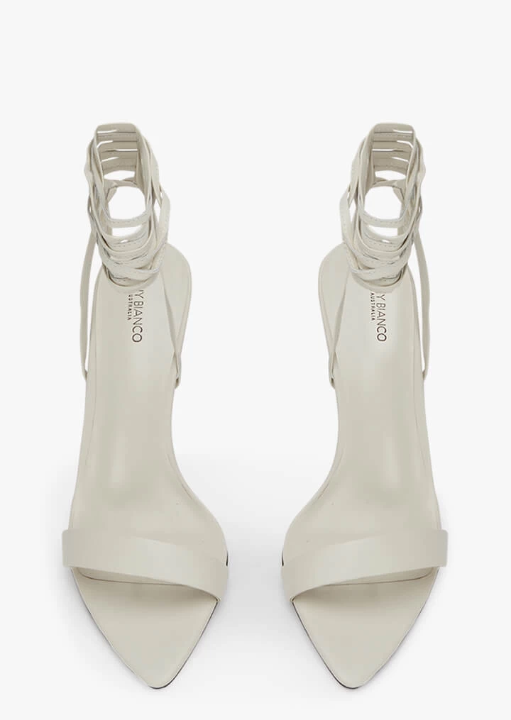 Take a moment for Marvin, our dove stiletto heel. Sleek and sensuous, Marvin elongates the leg whilst its legs ties allow for versatility.