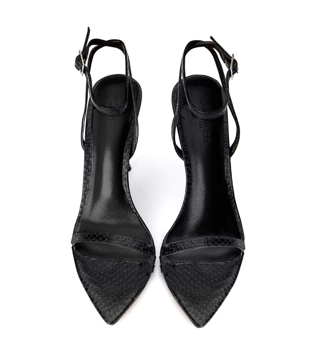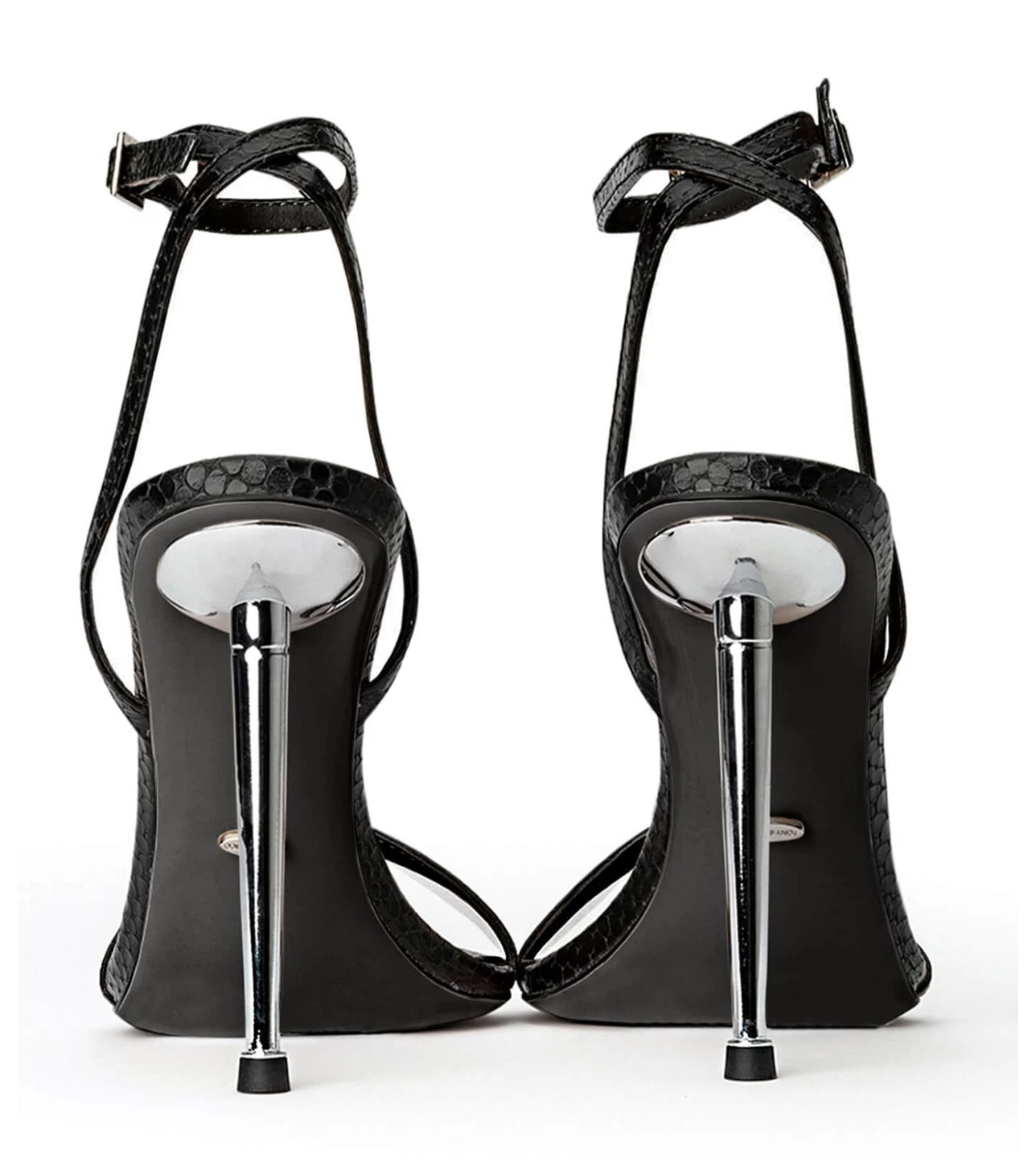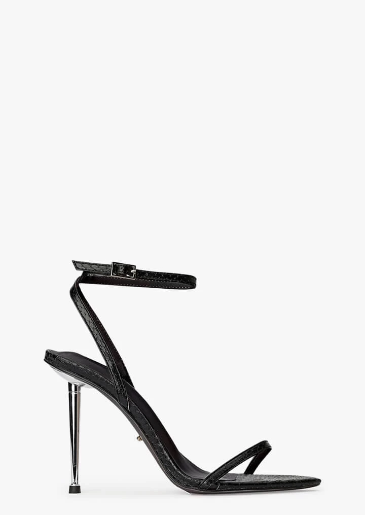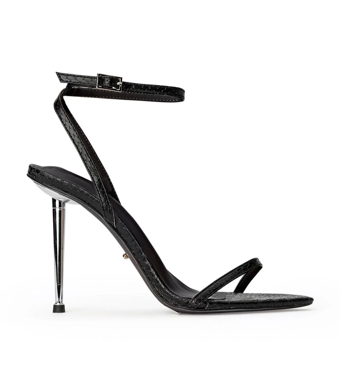 Make a statement in the striking Myra heels. Designed to turn-heads with a luxury metal stiletto heel, paired with a leather upper and ankle strap, they’re a bold twist on classic.