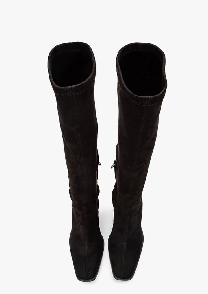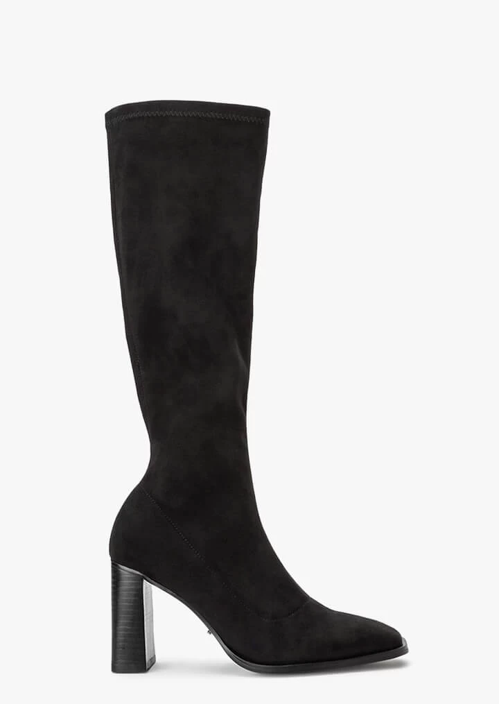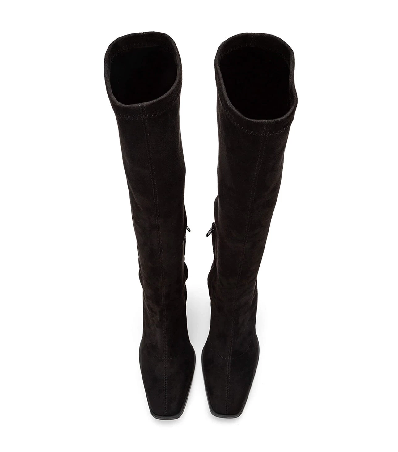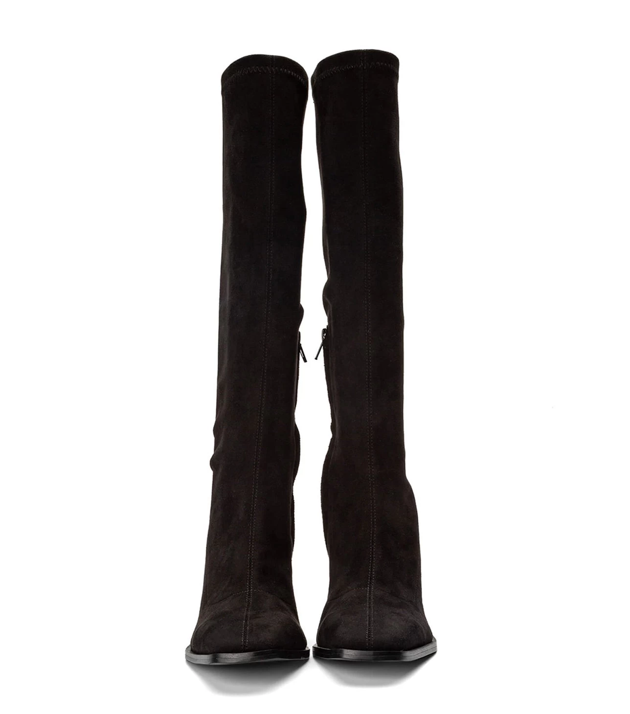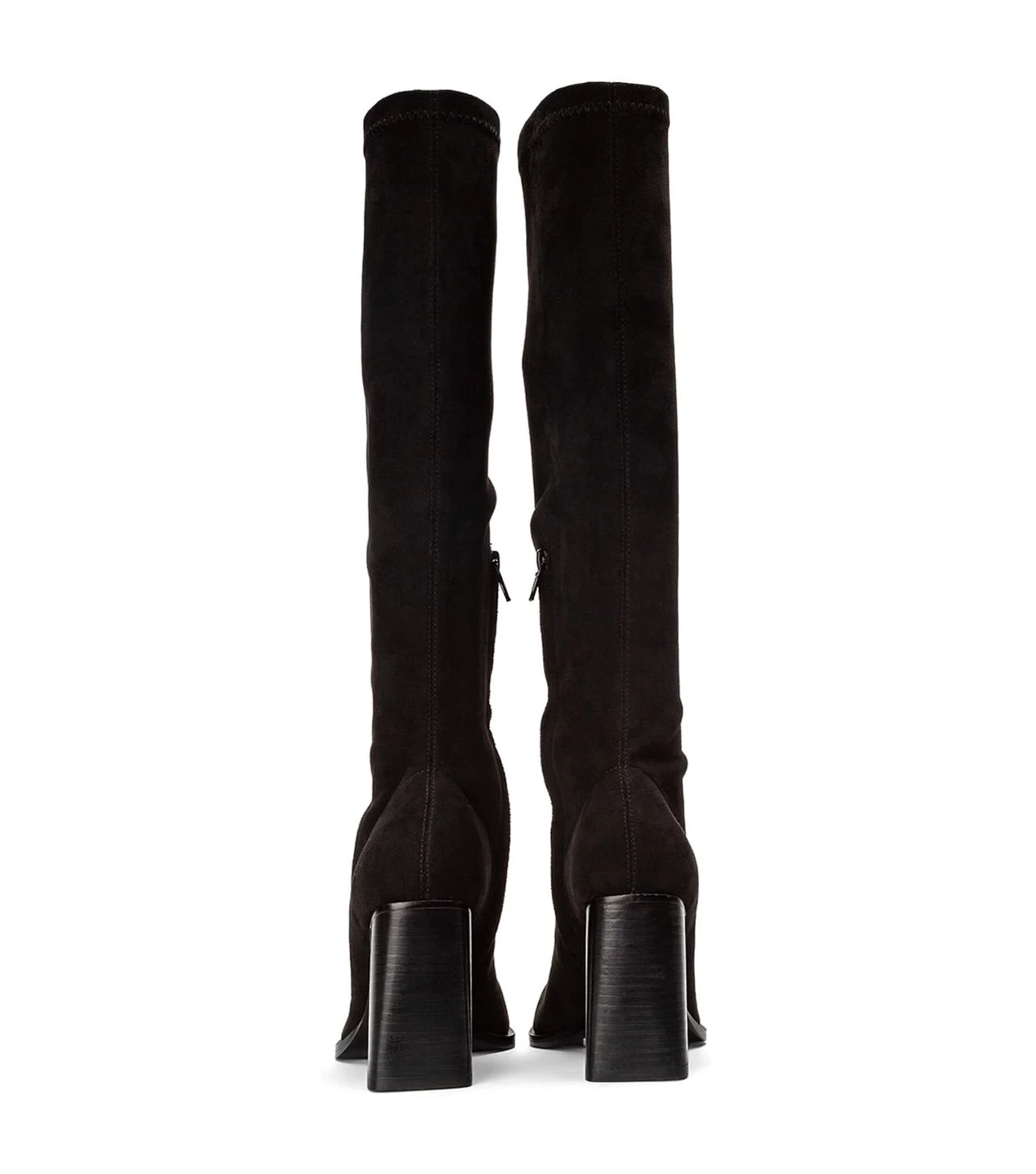 Rise to the occasion with the our chic new addition Renae. A classic black knee high boot in a suede-like finish, this style is sophisticated and effortless. Donning a block heel and sleek silhouette, she is simple yet effective.