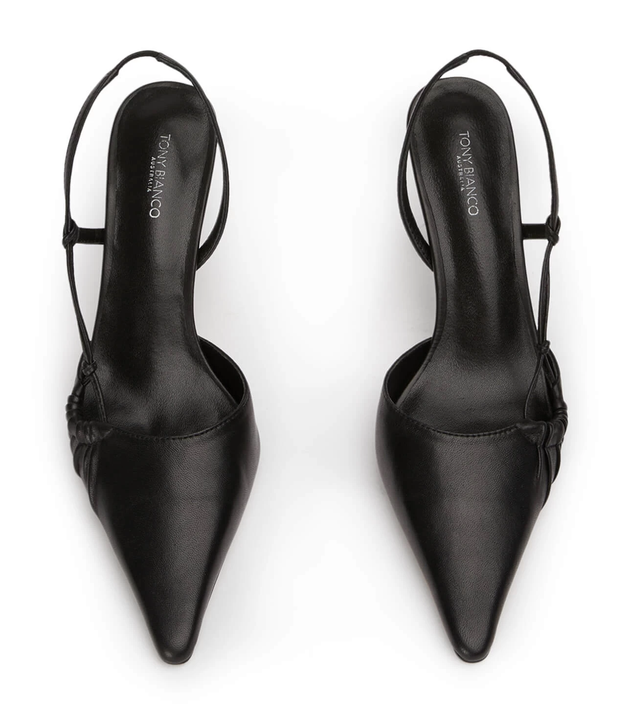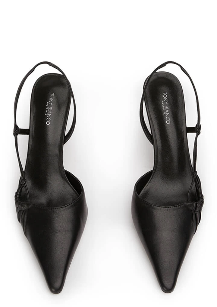 Sakai radiates major it-girl energy. A sleek and sophisticated sling back heel, with a chic elongated pointed toe and barely there silhouette. Made in our ultra smooth black nappa leather, this heel will take you effortlessly from day to night.
