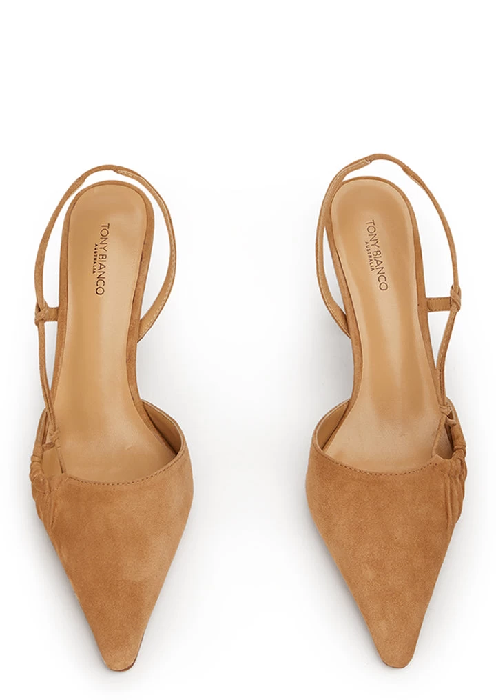 Sakai radiates major it-girl energy. A sleek and sophisticated sling back heel, with a chic elongated pointed toe and barely there silhouette. Made in our signature suede leather, this heel will take you effortlessly from day to night.