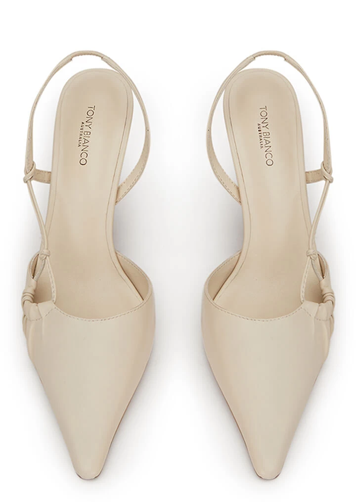 Sakai radiates major it-girl energy. A sleek and sophisticated sling back heel, with a chic elongated pointed toe and barely there silhouette. Made in our ultra smooth dove nappa leather, this heel will take you effortlessly from day to night.