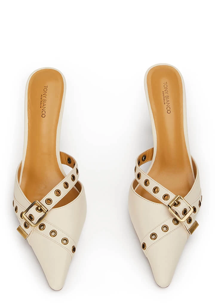 Introducing our stylish go-to pointed pump, Savoir. Featuring buckle embellishing and a sleek classic silhouette, this heel is perfect for day to night wear, all year round. Designed in our ultra luxe bone venice leather for a timeless finish.