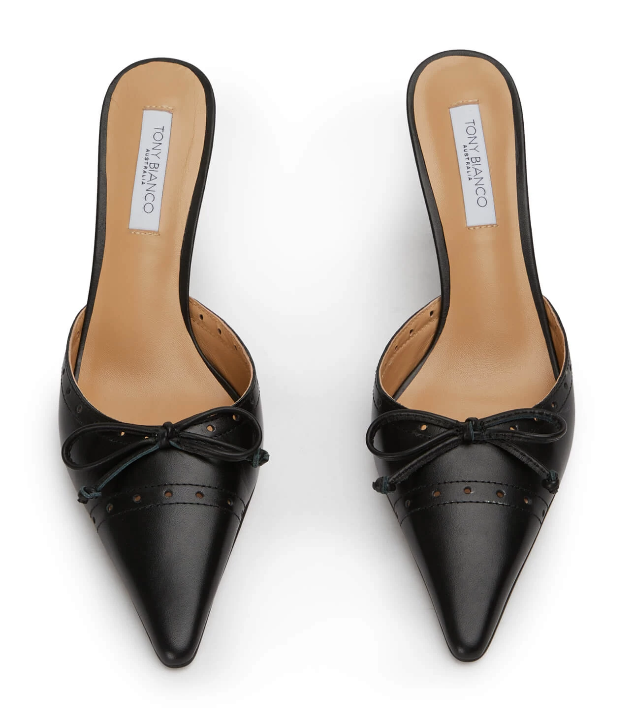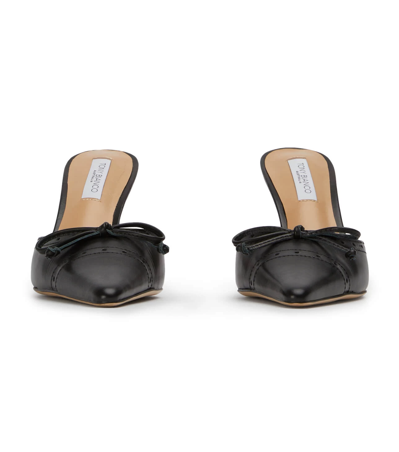 Undeniably chic is Scooter, our vintage inspired black pump. Featuring a pointed closed toe, slender leather bow and dainty perforations, she won’t disappoint.