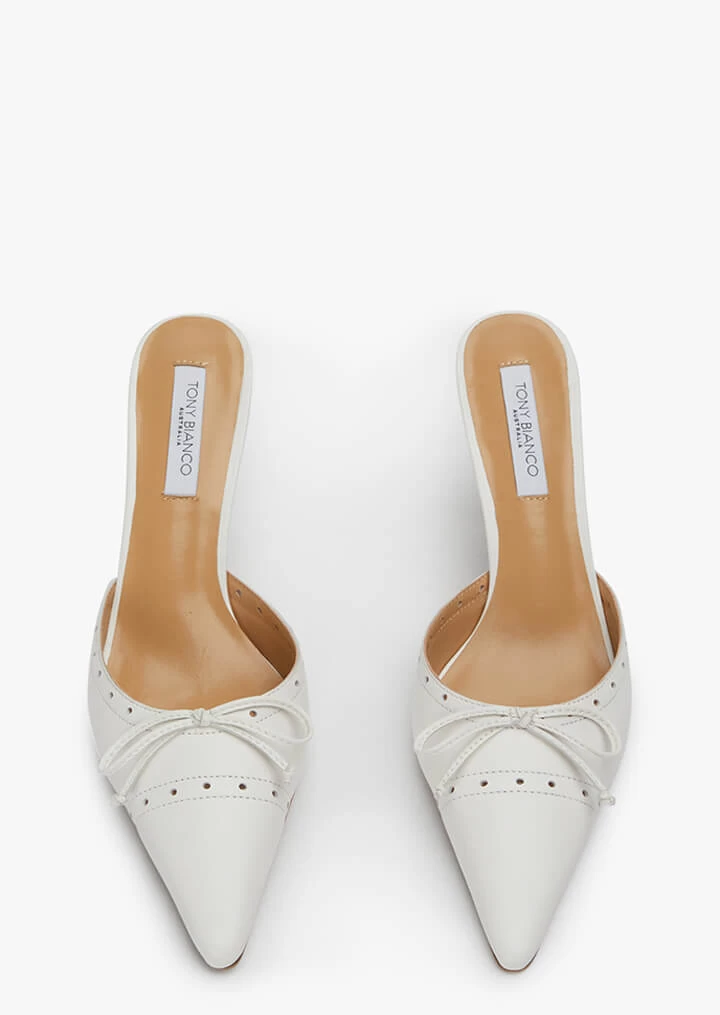 Undeniably chic is Scooter, our vintage inspired black pump. Featuring a pointed closed toe, slender leather bow and dainty perforations, she won’t disappoint.