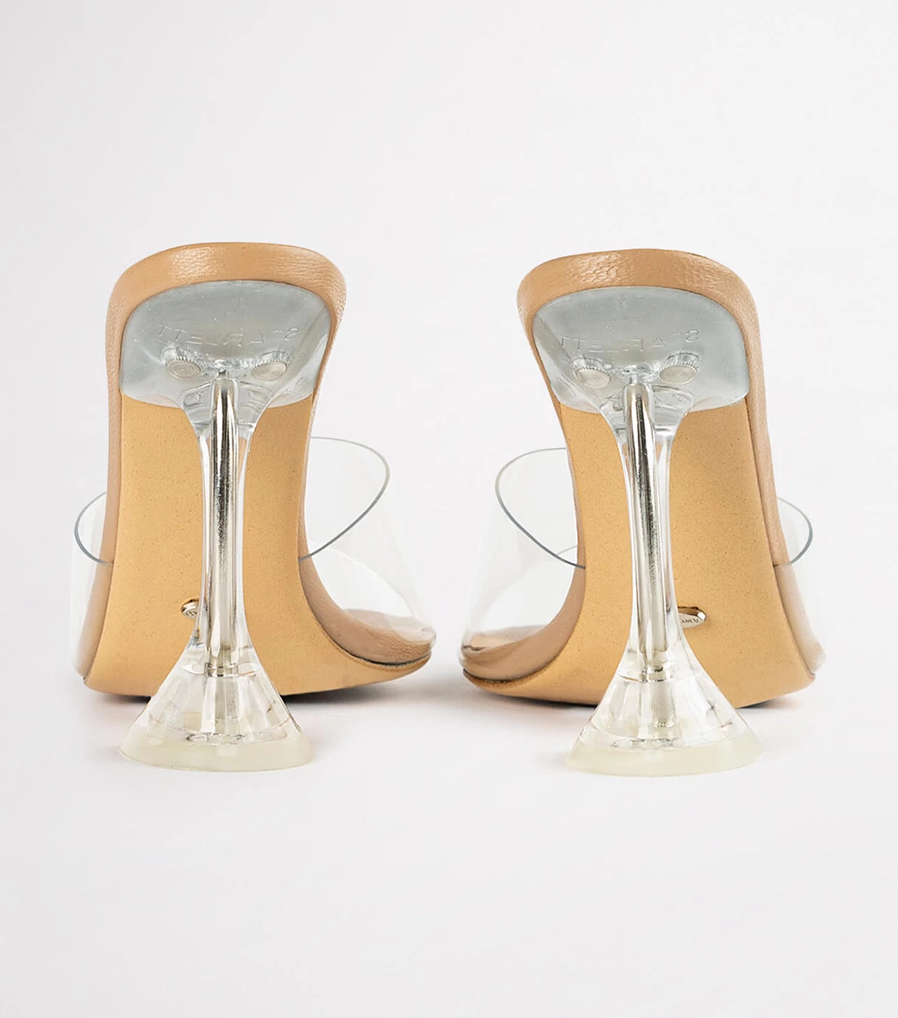 What ever the occasion, these nude mules are ready to go. Introducing the Serri clear heels, featuring a see-through vynalite upper with a clear perspex heel and a tonal coloured leather sole. Need we say more?