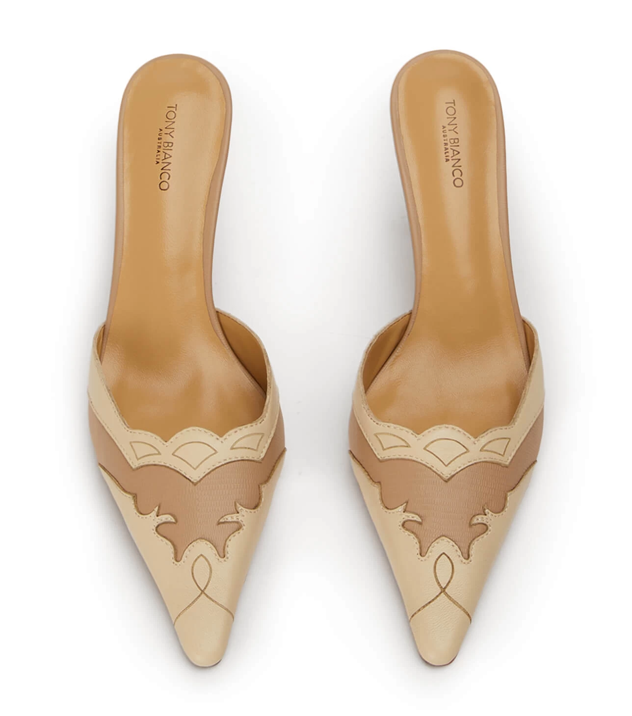 There’s a lot to love about Shuga. With her elegant pointed toe, two-toned patterned leather and open back, Shuga provides elevated western vibes in the form of a vintage pump and perfectly pairs with denim or a simple slim fitting maxi dress.