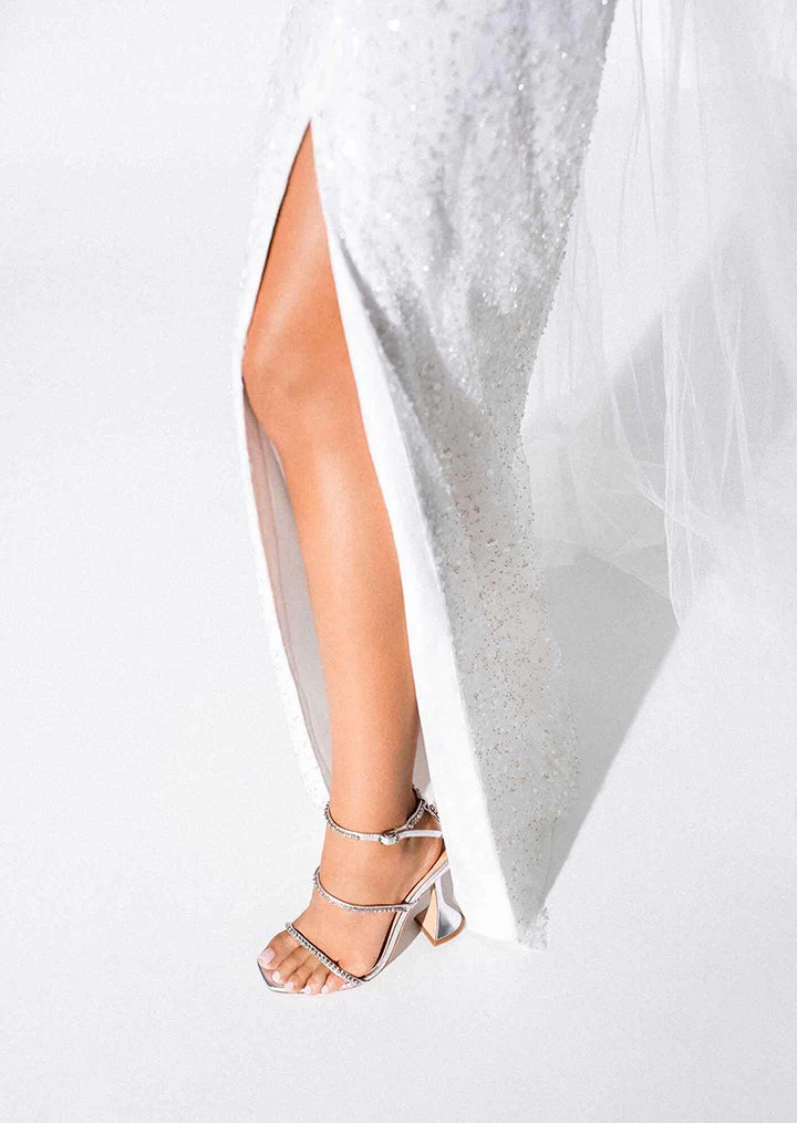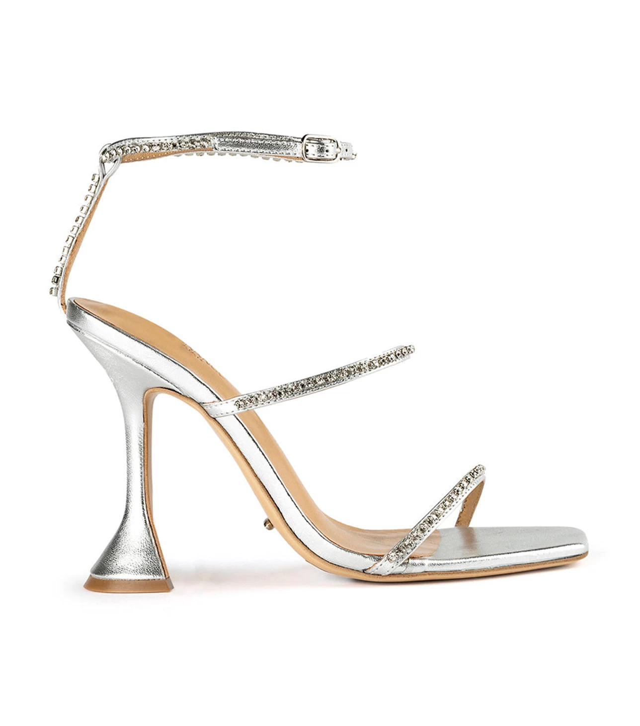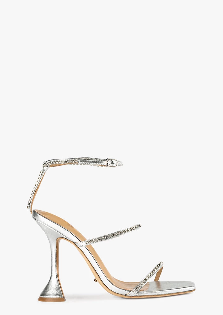 Shy by name, but not by nature. Our Shy silver strappy heels feature slender foot-framing straps lined with diamente detailing, an on-trend square toe shape and a flared hourglass shaped heel. Finished with a secure ankle buckle, pair with any outfit for the perfect finishing touch.