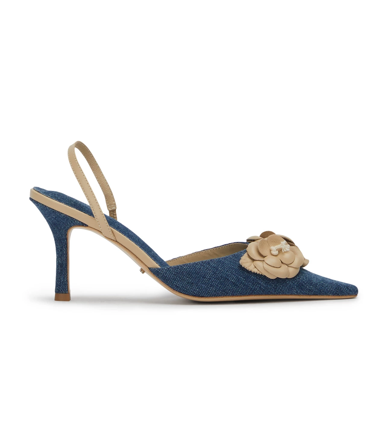 Simply gorgeous is Spencer, our sling-back denim pointed pump. Featuring beige leather contrast detailing, this heel will keep you seriously on trend.