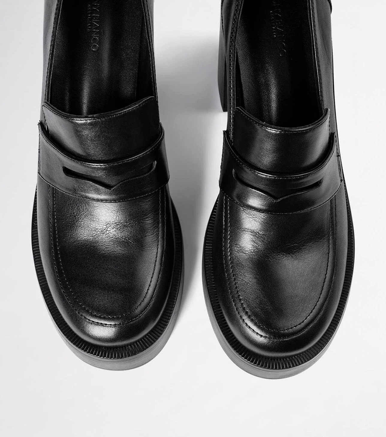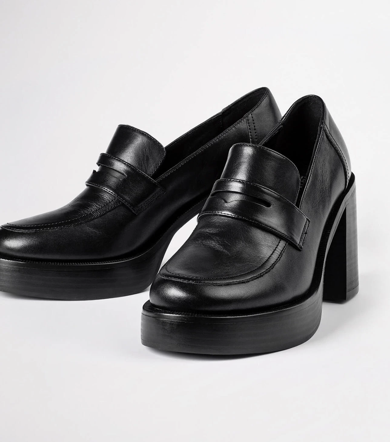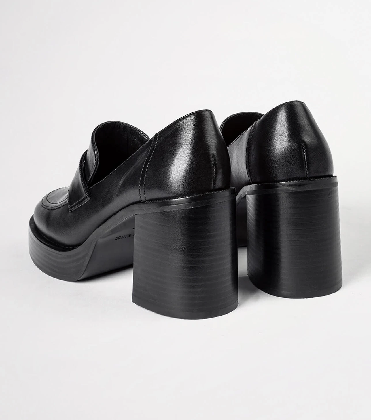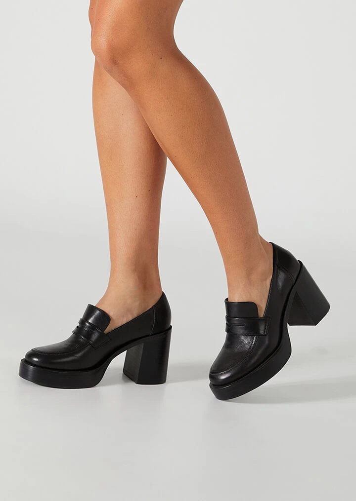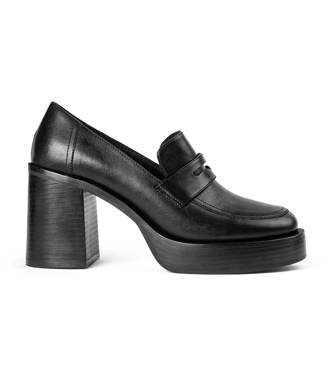 Say hello to platform shoe *heaven* with our Taranto heels. Embodying a chic 90’s vibe, this heeled loafer is set atop a thick block heel and chunky platform sole, a comfortable rounded toe-shape and a high-cut vamp. Finished with a genuine leather upper, lining and cushioned sole.