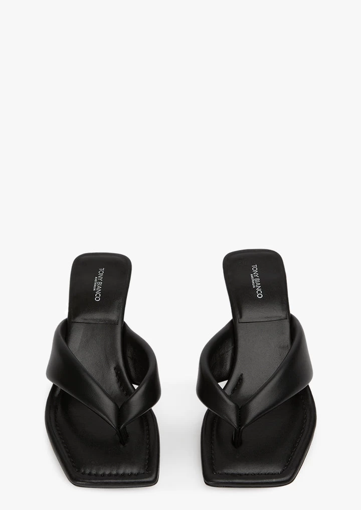 Your wardrobe isn’t complete without the perfect leather thong, that’s where Tropic comes in. Crafted from our buttery leather, this slip-on mule beholds a squared open toe and kitten heel to ensure both comfort and style.