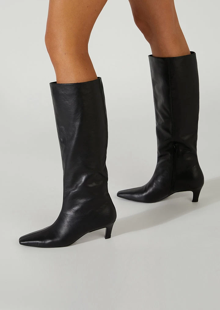 Cute meets comfortable with Vixon, our newest take on the classic calf boot. Featuring a sleek square toe, small 5cm heel an inner ankle zip. Finished in timeless black, she’s perfect for wear all year-round, whether you’re looking to dress her up or down.