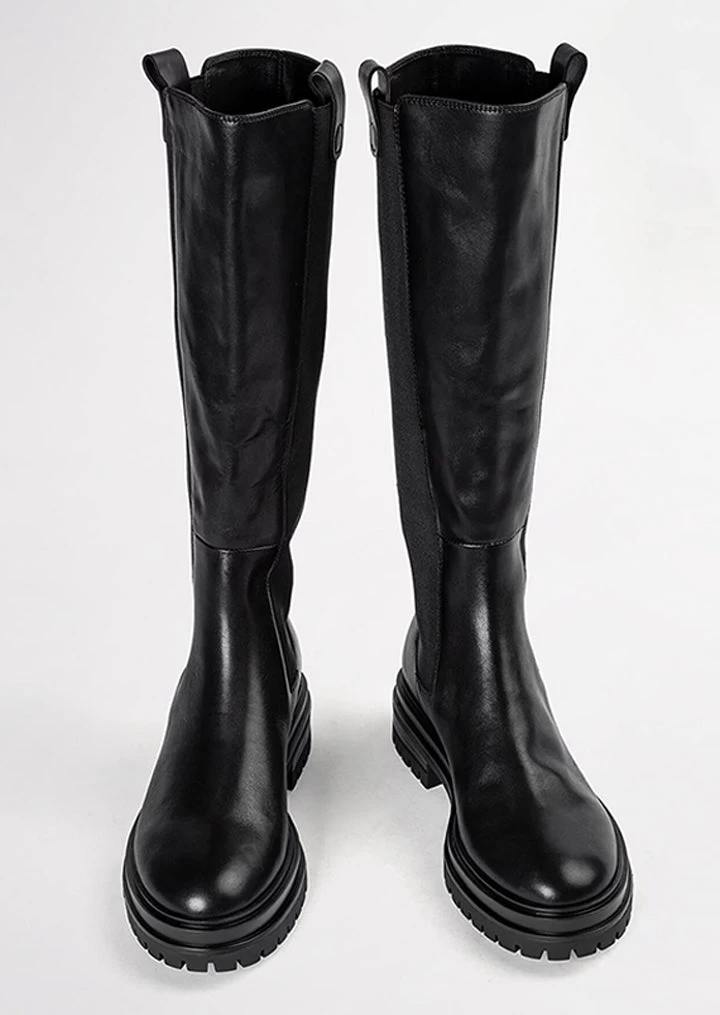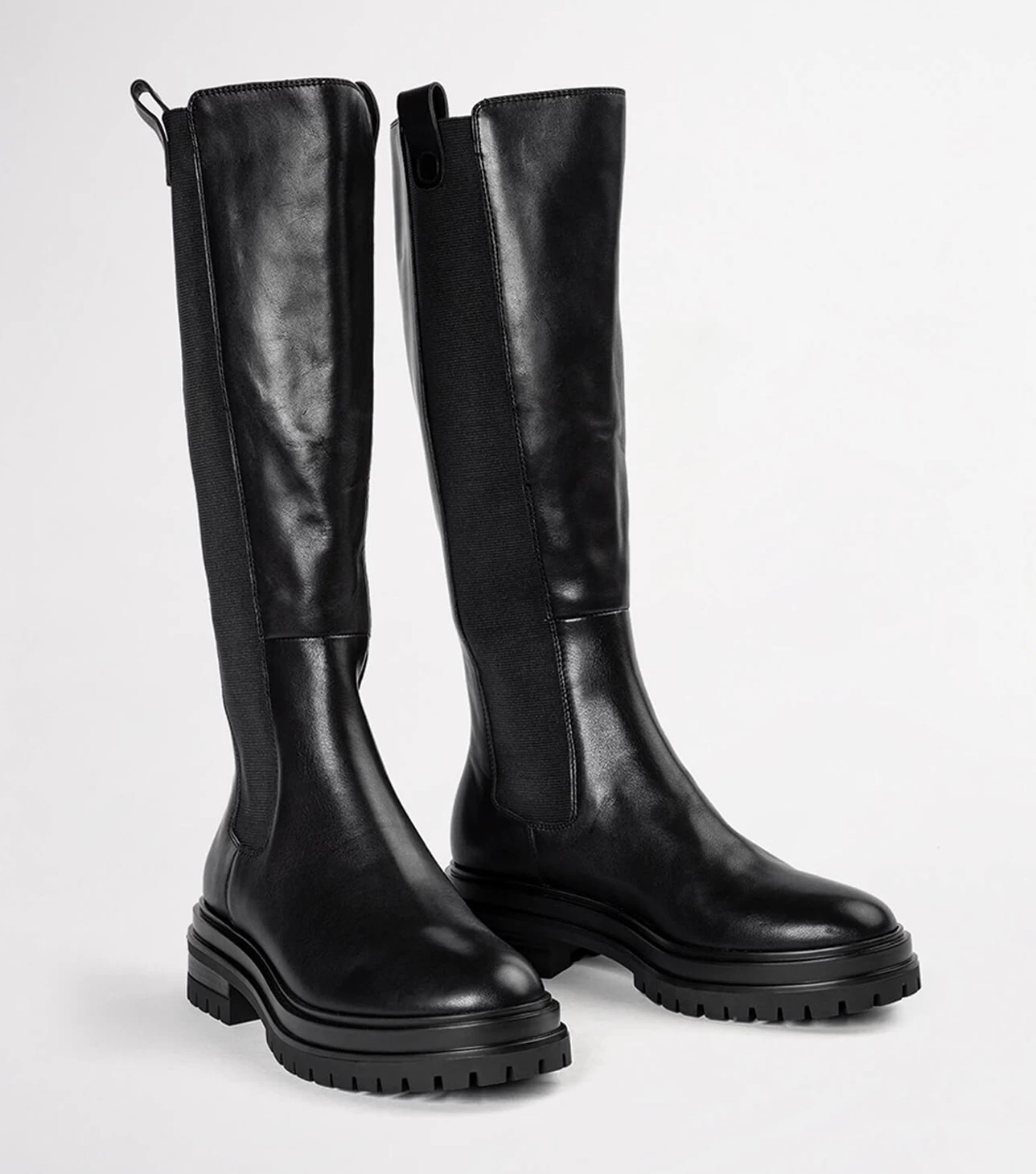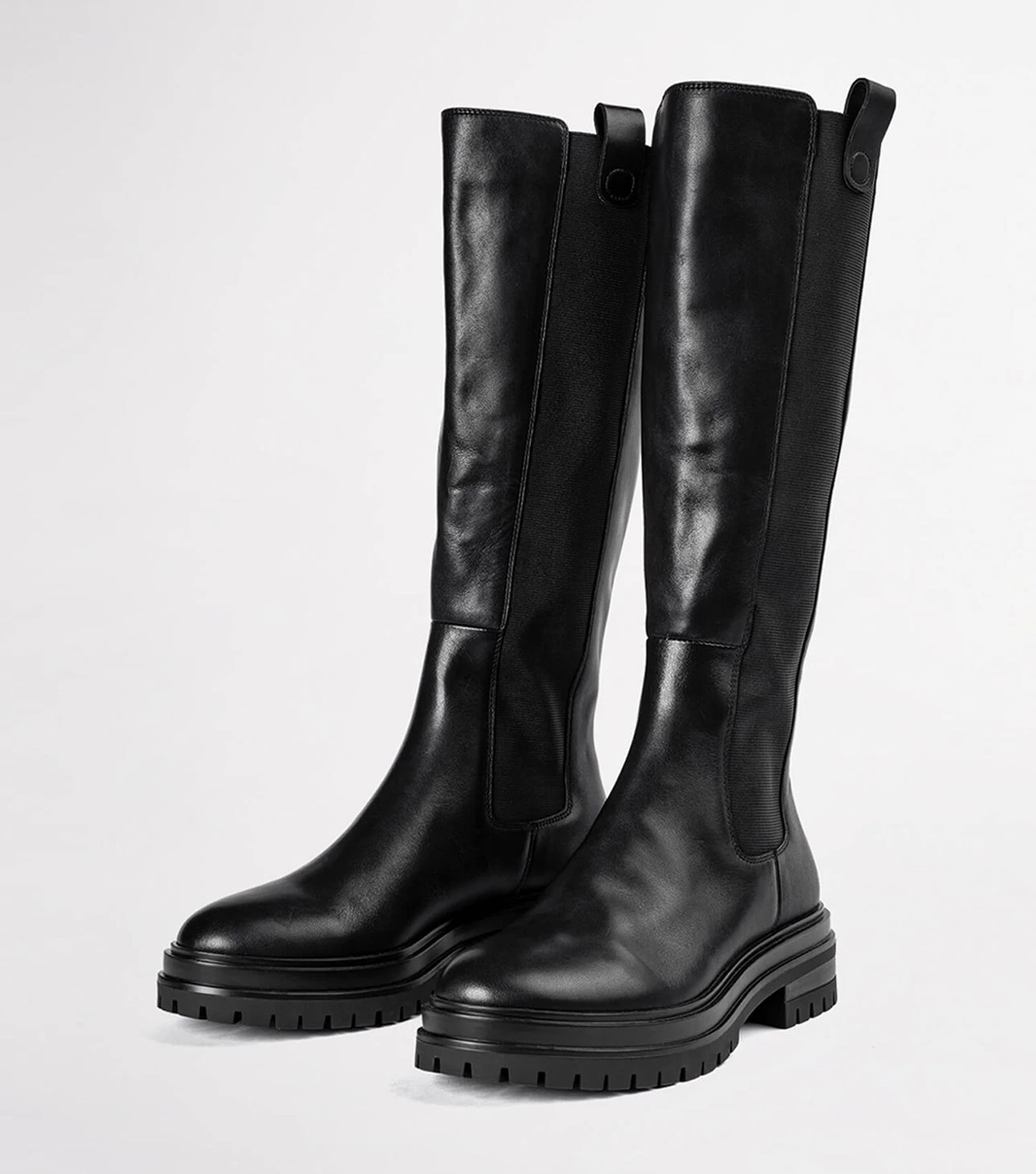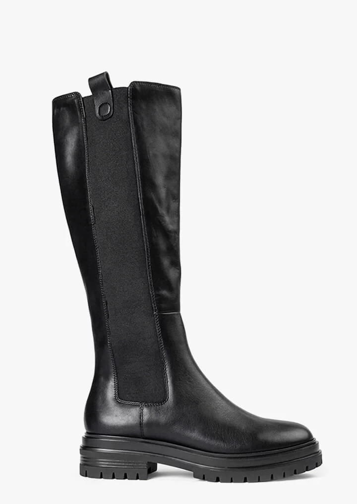 You can expect nothing but the best from our Winx knee-high black boot. Made with a premium leather upper and lining, this design features an inner elasticised panel, a comfortable rounded toe-shape, a top leather pull tab and a subtly slouched fit. Finished with a chunky exposed sole and a cushioned foot-bed for maximum comfort.