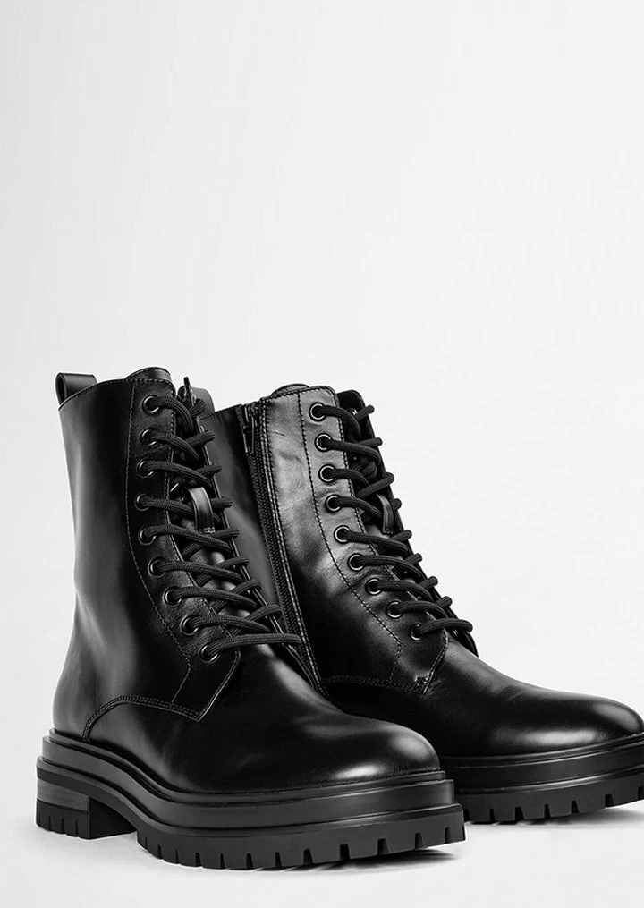 The boot you will soon have on high rotation. Introducing our Wya ankle boot – designed with a sleek rounded toe-shape, a chunky exposed sole, a lace up front with matching coloured eyelets and a top leather pull tab. Pair effortlessly with your fav dress for an edgy yet feminine look.